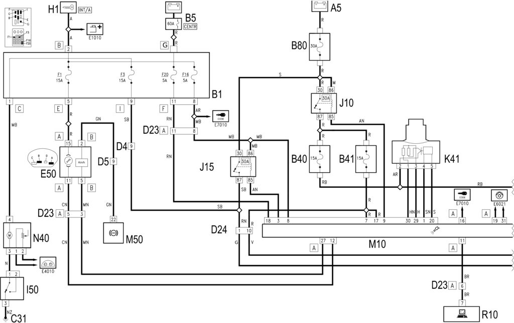 B40  Fuel injection services supply fuse-